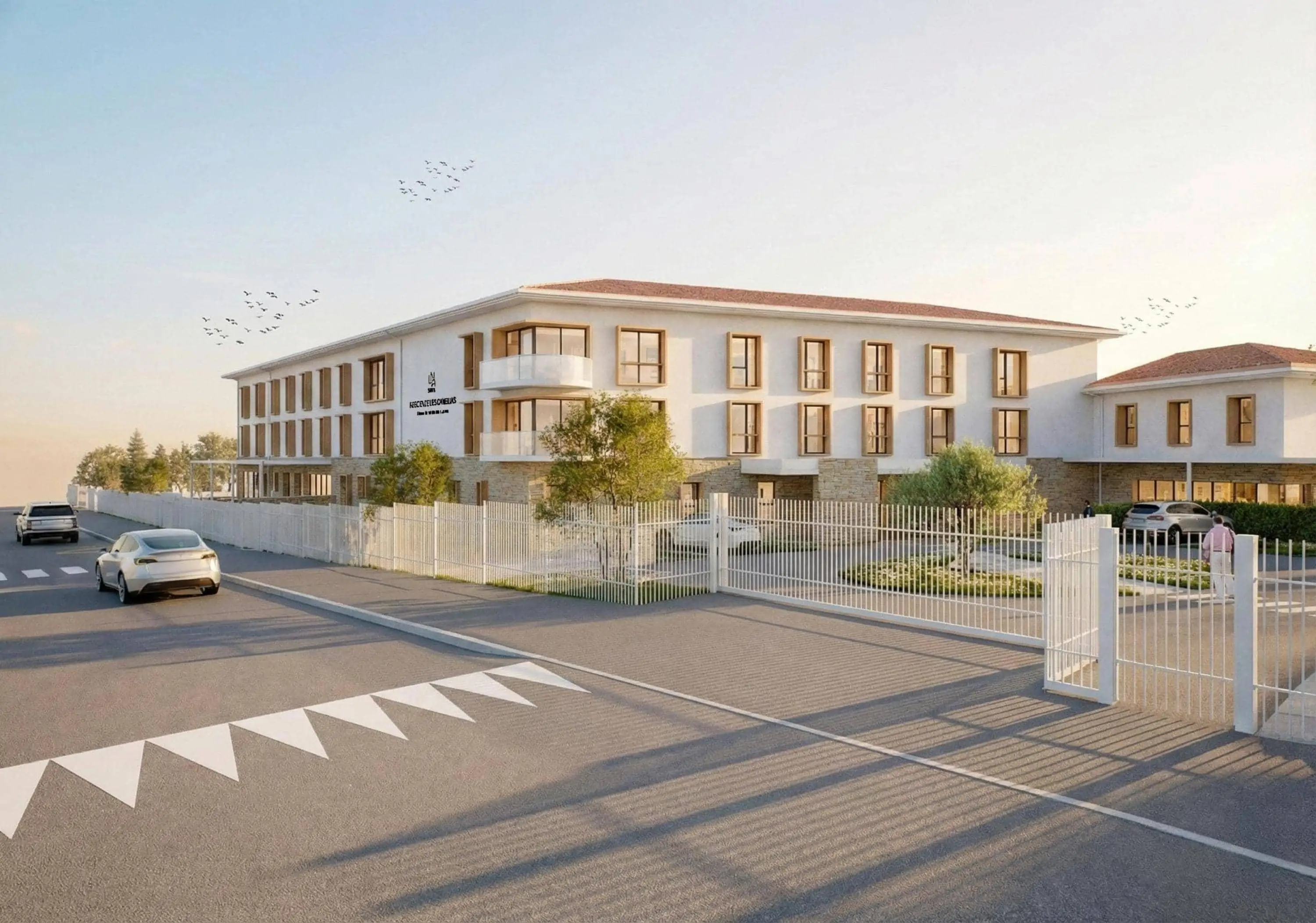 EHPAD de 111 lits et 12 places d’accueil de jour à Cabestany, relocalisé à moins de 200 m du site actuel. Le projet optimise l’emprise foncière, modernise l’outil immobilier et augmente l’attractivité de l’établissement. L’opération améliore la fonctionnalité des espaces, la qualité de vie des résidents et la performance immobilière sur le long terme (Certification HQE).